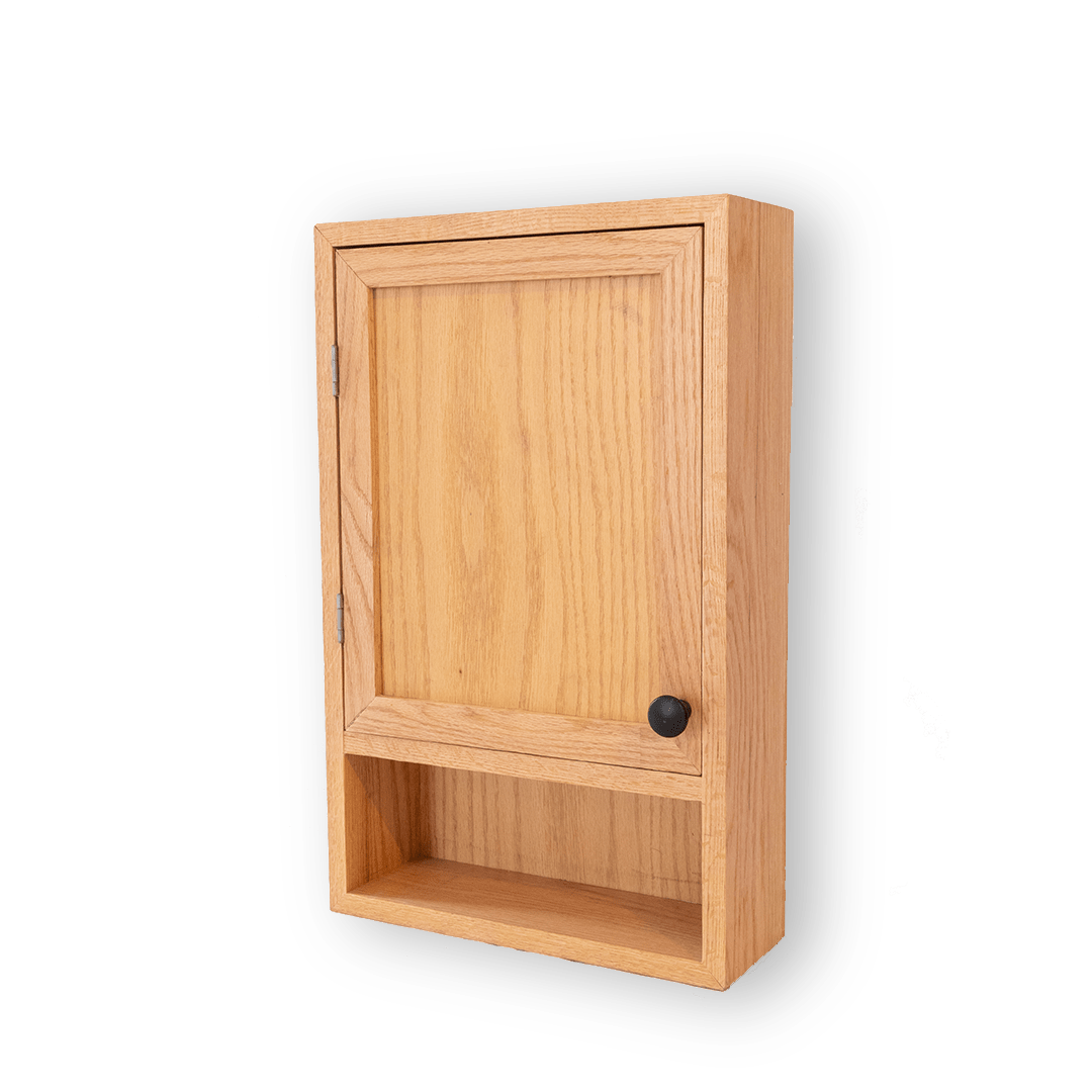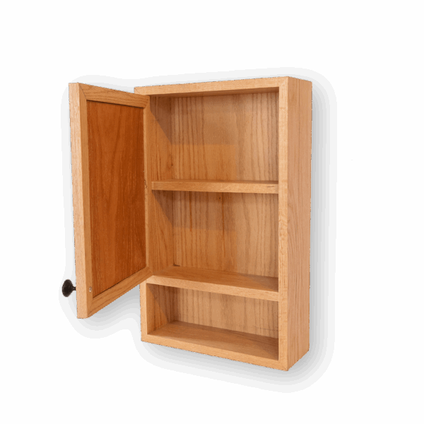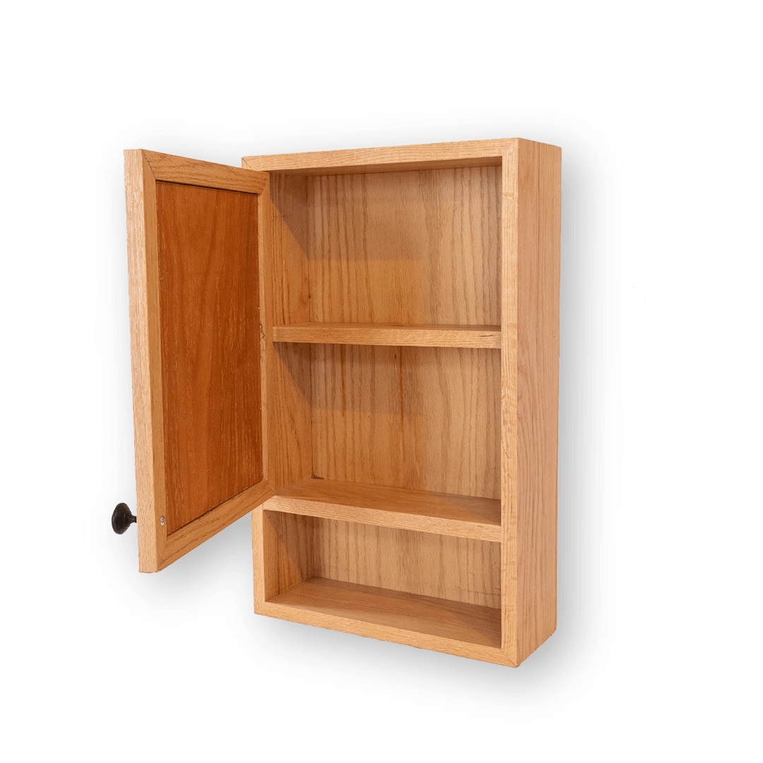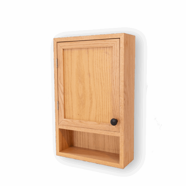 Botiquín de madera fabricado en madera sólida de encino y diseñado para mantener tus esenciales organizados con elegancia.
